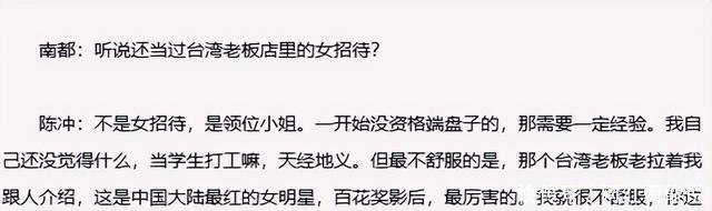 华人老板知道她是影后,就拉着她到处给客人介绍,“她是中国大陆最红的明星,她是影后”。 这样的介绍让她感觉到很不舒服,她认为“丢祖国的脸”(彼时未入美籍)。 可好不容易有了转机,她却用一句话直接“封杀了前途”。
